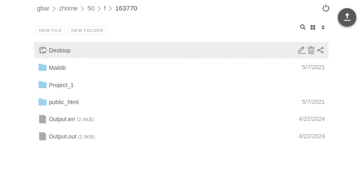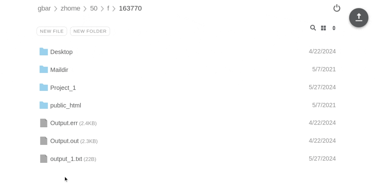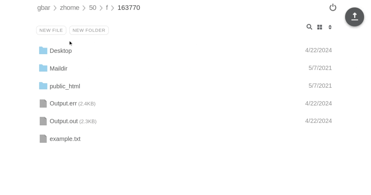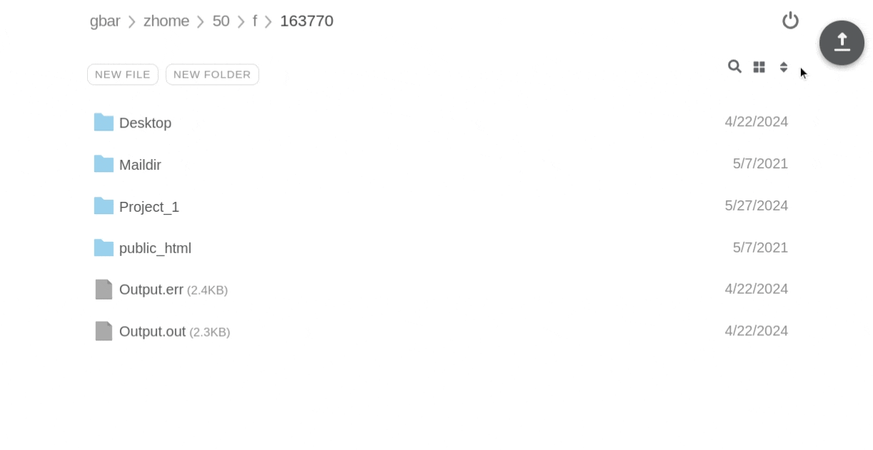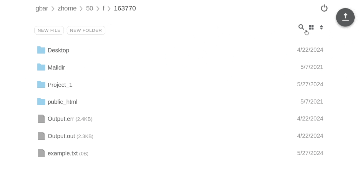Upon logging in, you'll land in your designated home directory within the cluster. This location is reflected in the address bar.