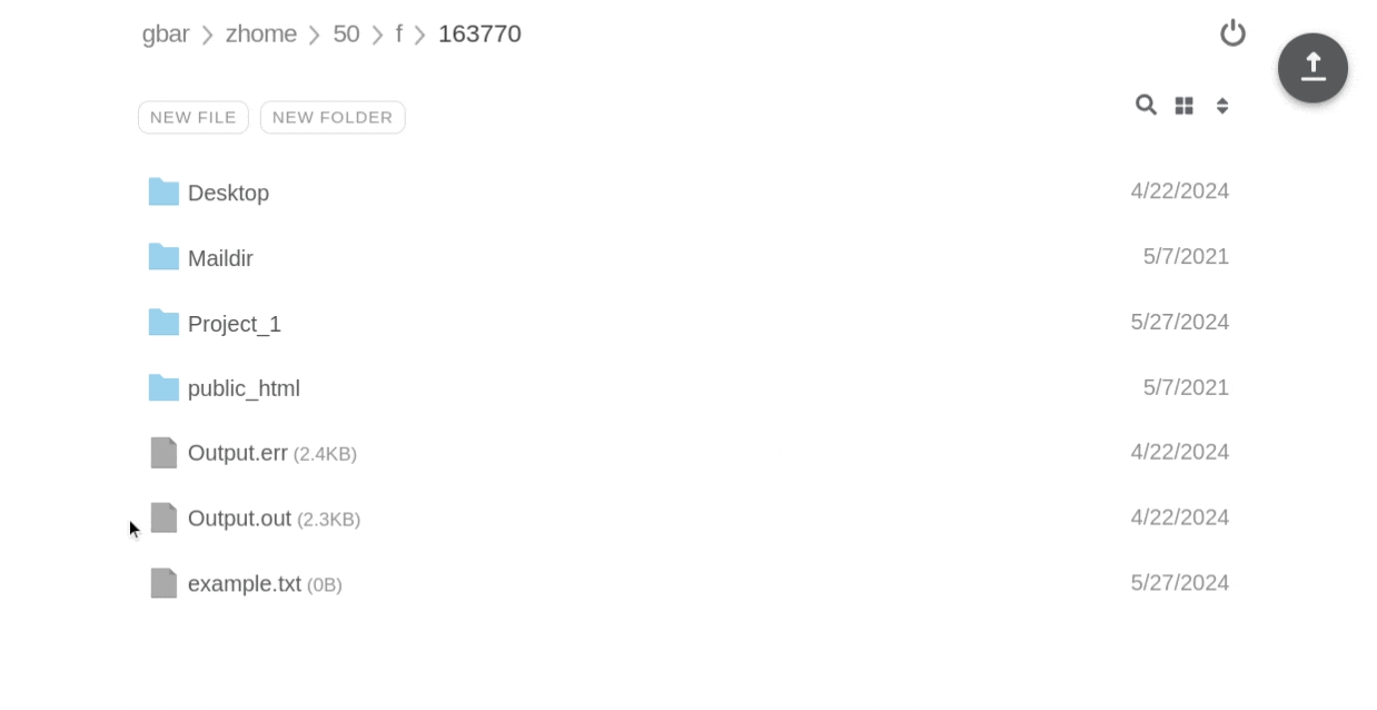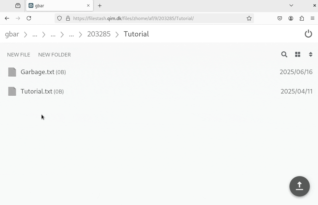 Uploading files is a simple process. You can either drag and drop them directly into the file explorer, or click the upload button in the top right corner. This will open your local file system for selection. Please note that the maximum file size for upload is 2GB.