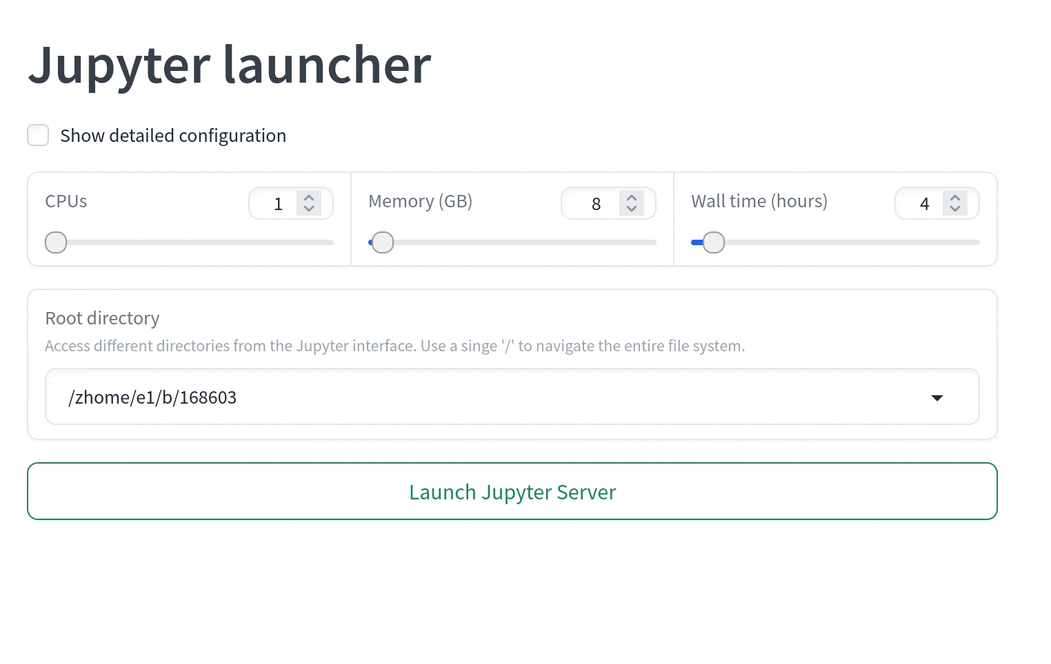 The Jupyter launcher provides a simple interface to start Jupyter Notebook servers on the DTU HPC cluster.