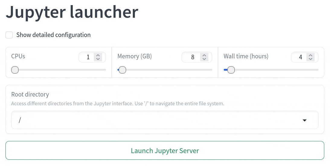 To access more options regarding the Jupyter Server, press the checkmark Show detailed configuration: