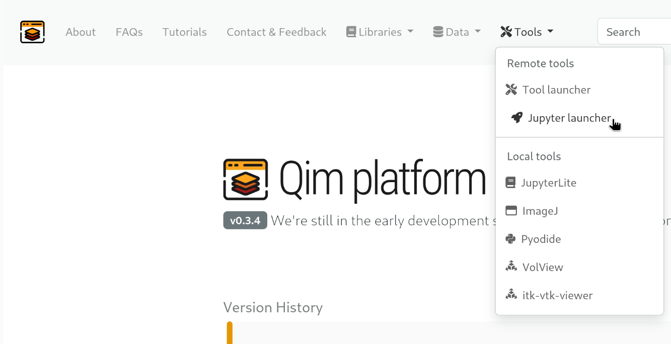 The usual URL for the Jupyter Launcher is https://platform.qim.dk/tools/jupyter-launcher.